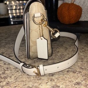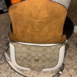 Coach Georgie Saddle Bag in signature print and white with gold hardware