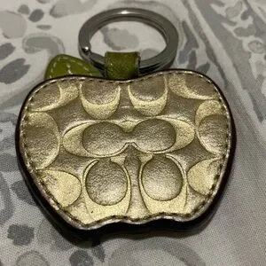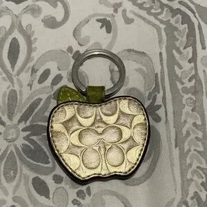 Stylish gold apple-shaped keychain with embossed design. Perfect accessory for your keys. Can fit a picture into the back