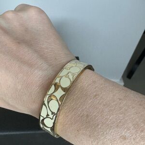 Add a touch of sophistication to your accessories collection with this Coach gold and white enamel bracelet. Stylish and versatile, it’s perfect for stacking or wearing solo.