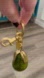 Elegant key holder with shimmering green glitter. Features gold-tone hardware. Stylish and functional. It’s got heft to it.