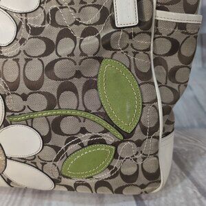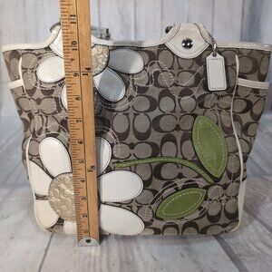 Coach Grey Canvas Signature Bleecker Daisy Double Handle Women's Tote Handbag.