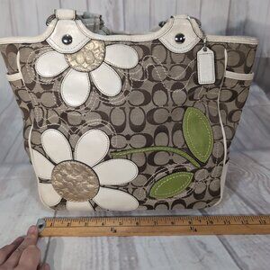 Coach Grey Canvas Signature Bleecker Daisy Double Handle Women's Tote Handbag