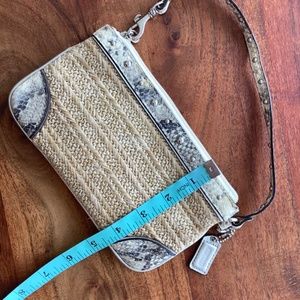 EUC Coach Hamptons wristlet in silver metallic python leather and straw. Very little wear and no flaws, please see photos for description and approx. measurements. A great little summer bag ☀️