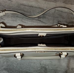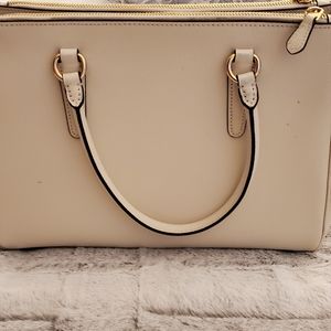 Gorgeous Coach handbag with shoulder strap in white pebble leather and gold detailing. Near perfect condition. Approx dims - 11"x9"x4"