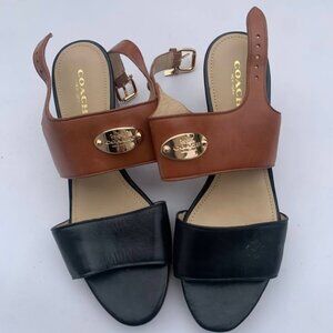 Coach Hendrick Wedge Sandals โ Black & Tan Leather โ Size 7