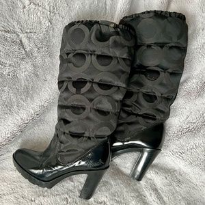 Coach High Heel Winter Boots, patent leather outsole with “puffer” shaft, size 6.5M
