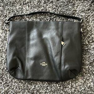 Coach Isabelle East/West Pebble Leather Convertible Shoulder Bag Black Crossbody Pebble leather Inside zip, cell phone and multifunction pockets Zip-top closure, fabric lining Handle with 11 3/4 drop Original crossbody strap NOT included Coach keychain charm NOT included