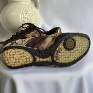 With the Coach Jayme Q582 Signature Khaki/Chestnut C125 Runner, you'll experience perfection in every step. This expertly crafted shoe boasts a signature khaki and chestnut design, providing both style and functionality. Amazing condition