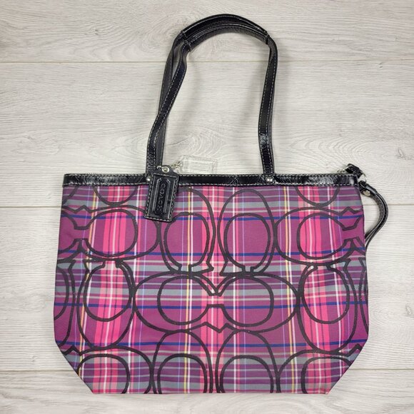 Keywords: Coach tote, Coach bag, Coach purse, Coach shoulder bag, Coach handbag, Coach tote bag, Coach plaid tote, Coach tartan bag, Coach jewel tone bag, Coach poppy collection, Coach signature tote, Coach signature bag, designer tote, designer handbag, plaid tote bag, tartan plaid purse, jewel tone handbag, Coach shopper bag, Coach everyday tote, authentic Coach bag