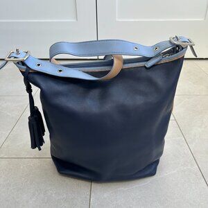 This very rare Coach 22414 Legacy Large Duffle Bag from 2012 is remarkable. Featuring buttery soft leather in navy and light blue, and off white. This large duffle bag is both super stylish and functional. Perfect for everyday wear and large enough for all of your needs. If you love classic Coach design and quality, this is a must have for your collection! Wear it, love it, pass it on!
