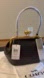 Sophisticated black leather clutch. Features a striking gold frame. Perfect for elegant occasions.