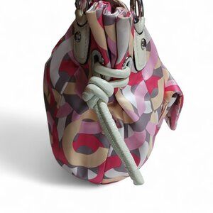 Coach Kristin Satchel Op Art Ivory Leather Cinched Tied Sides