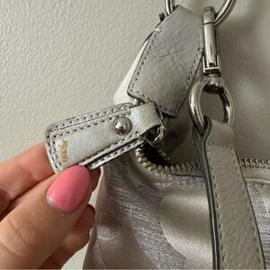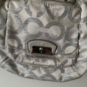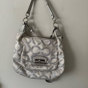 Coach Kristin Sequin Op Art Hobo Shoulder Canvas Bag Silver Grey