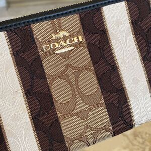 Coach Large Corner Zip Wristlet Wallet Signature Jacquard with Stripes- Unused