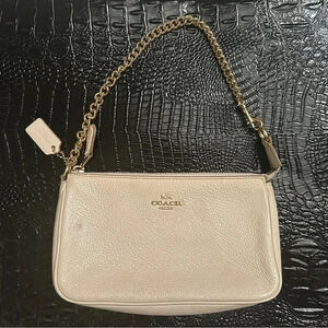 Gold chain strap, includes clip to form a wrist strap or attach to the inside of a bag