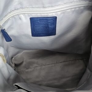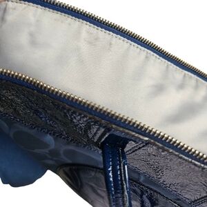 Coach Laura patent leather satin fabric navy blue sholder tote bag.