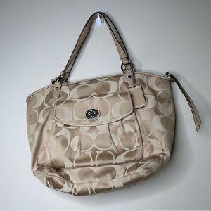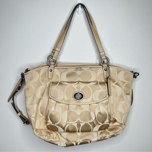 Coach Leah Signature Tote Canvas in Gold Khaki Large