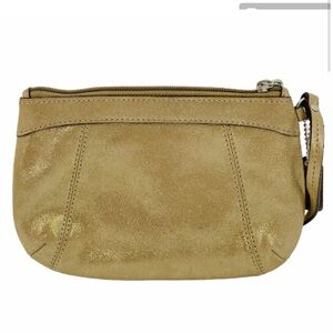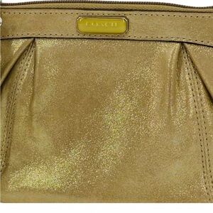 Coach Leather Gold Metallic clutch Wristlet pink interior