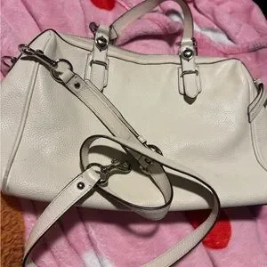 This elegant cream leather handbag is perfect for any occasion. Its sleek design and high-quality material make it a must-have accessory.