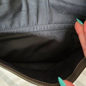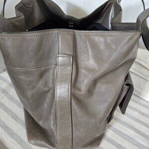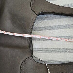 Coach legacy leather American Icon XL #19997 in grey in EUC with minor marks that blend in with the patina of this bag and can be buffed out, has 1 scratch per last pic. Double carrying straps with reinforced leather per pic, large pocket with turnlock closure at front and large zippocket at back. Large interior zip pocket and 2 smaller pockets on opposite wall. Black cloth interior is in new condition. Beautiful supple leather and will carry alot!!!