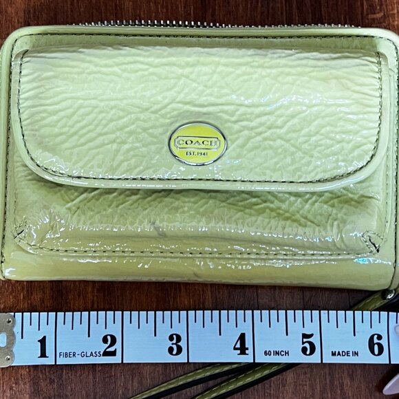 Coach Legacy Peyton Lime Green Medium Leather Botton-Snap Wallet Wristlet.