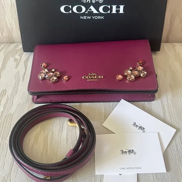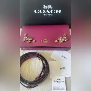 This Coach crossbody bag in a vibrant purple shade combines elegance with functionality. Crafted with the brand's signature attention to detail, it features distinctive hardware and a sleek design. Perfect for adding a pop of color to any outfit, this bag is a must-have accessory.