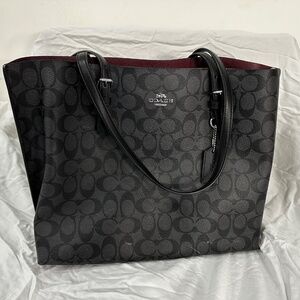 This beautiful Coach Mollie Tote is limited edition. It features a red lining and soft green interior pocket. This tote is slightly used, with some scuff marks.