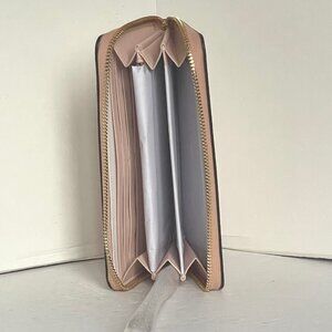 TAGS: coach, phone wallet, wristlet, long zip, rosette floral, pink canvas, compact wallet, card slots, designer handbag, authentic coach, casual chic, everyday carry, CZ329