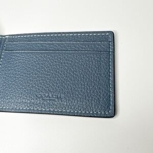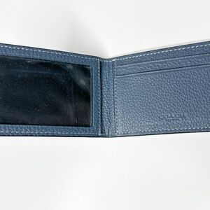 Wallet is in a blue pebble leather. In wonderful vintage condition with no defects to note.