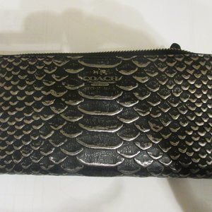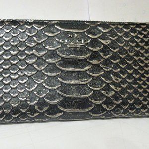 Coach Metallic Leather Accordion Zip Wallet Gray Snake Python Glitter Made in Vietnam With Metal Logo Coach New York Used & In good condition
