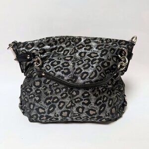 Coach Metallic Silver & Black Ocelot Purse – Designer Shoulder Bag