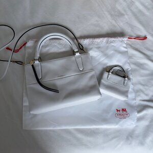Coach Mini Borough Bag in White with Matching Mini Keychain Bag Charm
