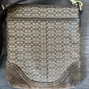 Coach Monogram Messenger suede/canvas Bag 1584