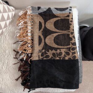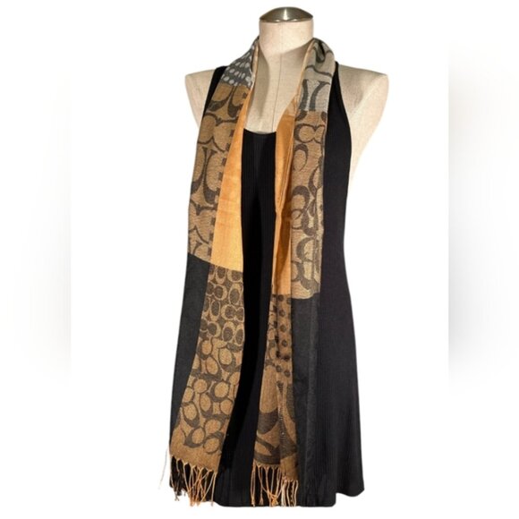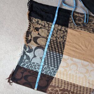 Coach Monogram Patchwork Boho Pashmina Preppy Large Fringe Scarf