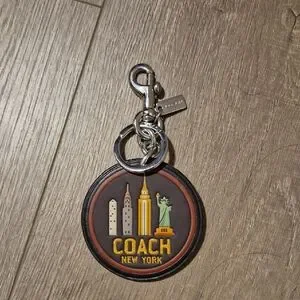 Vibrant Coach keychain with iconic New York landmarks. Ideal for key organization.