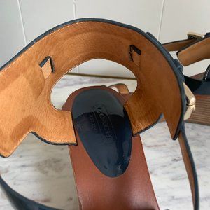 Women's classic Coach navy leather wedge sandals size 9.5B. In good used condition, smoke free home.