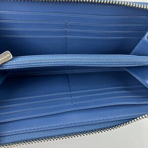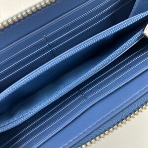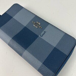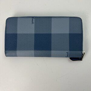 Coach New York Zip Up Wallet Card Holder Blue Square Plaid Checkered