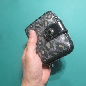 Coach Ocelot Leopard Medium Snap Zip Around Wallet.