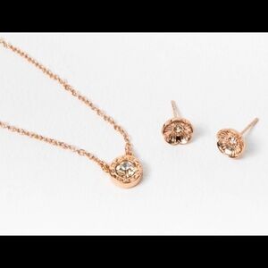 Coach Open Circle Necklace & Tea Rose Stud Earrings Set in Rose Gold NWT