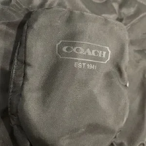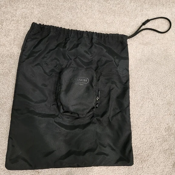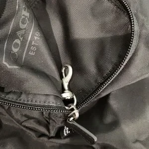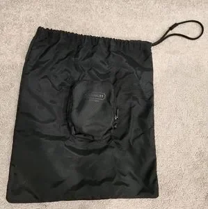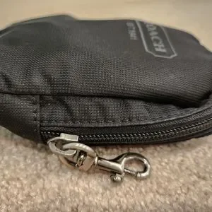 This bag folds into itself and has a zipper and clip. Excellect condition!