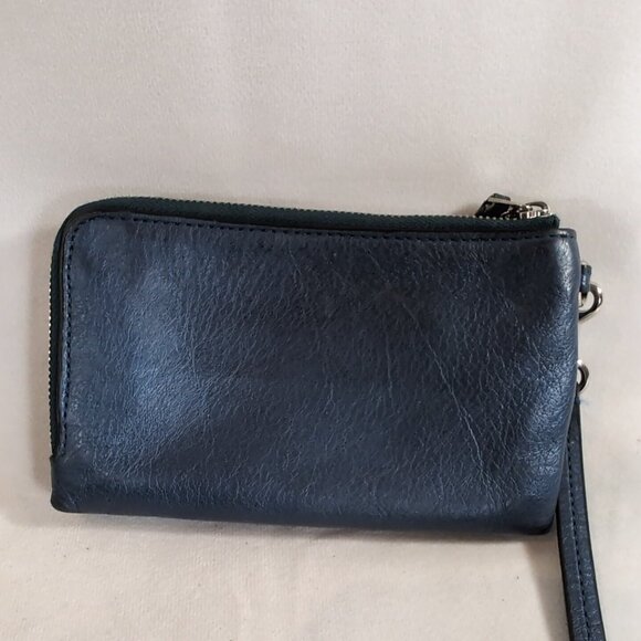 Coach Park Wristlet Metallic Blue Leather Pebbled F64130 Double Zipper Strap