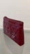 Chic and vibrant wristlet by Coach from the Signature series. This rare find features a deep cherry gloss finish, open zip, satin interior in grey and a single slip pocket!