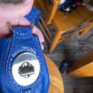Coach Penelope Large Blue Leather With Blue Snakeskin Trim Shoulder Bag