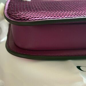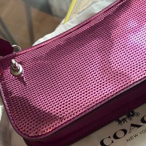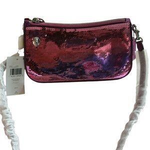 This Coach clutch in a vibrant pink hue is a perfect blend of elegance and practicality. Featuring metallic accents, it adds a touch of sophistication to any ensemble. Ideal for both casual outings and formal events, this wristlet is a versatile accessory for any wardrobe.