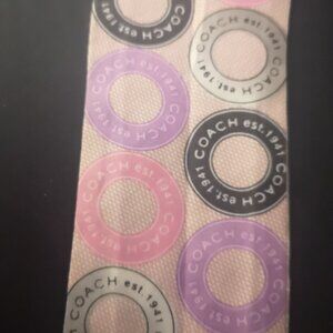 Coach Pink,Tan, Purple & Black Medallion Silk Skinny Scarf