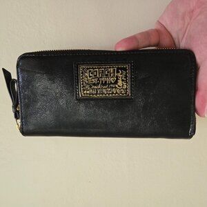Coach Poppy Daisy Liquid Glass Zip Around Continental Wallet Black Gold