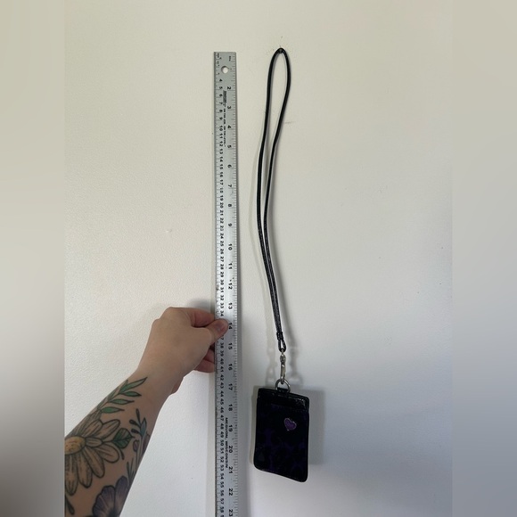 Coach Poppy Daisy Ocelot ID / Badge Purple Black Leopard Print