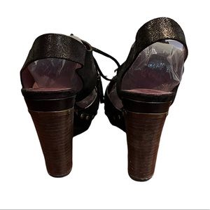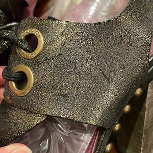 Good condition. Leather has some marks, heels have some marks and a spot on the side of the sole has some indents/marks. All as shown in photos.