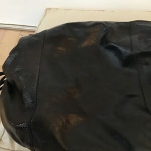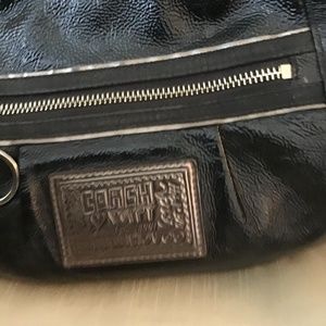 Sleek black crossbody bag. Features front zipper pocket. Stylish and versatile design.