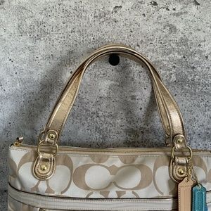 Coach Poppy Signature Sateen Glam Beige NEW XL